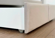 Тахта оснащена выкатными ящиками на роликах высотой 3 см.